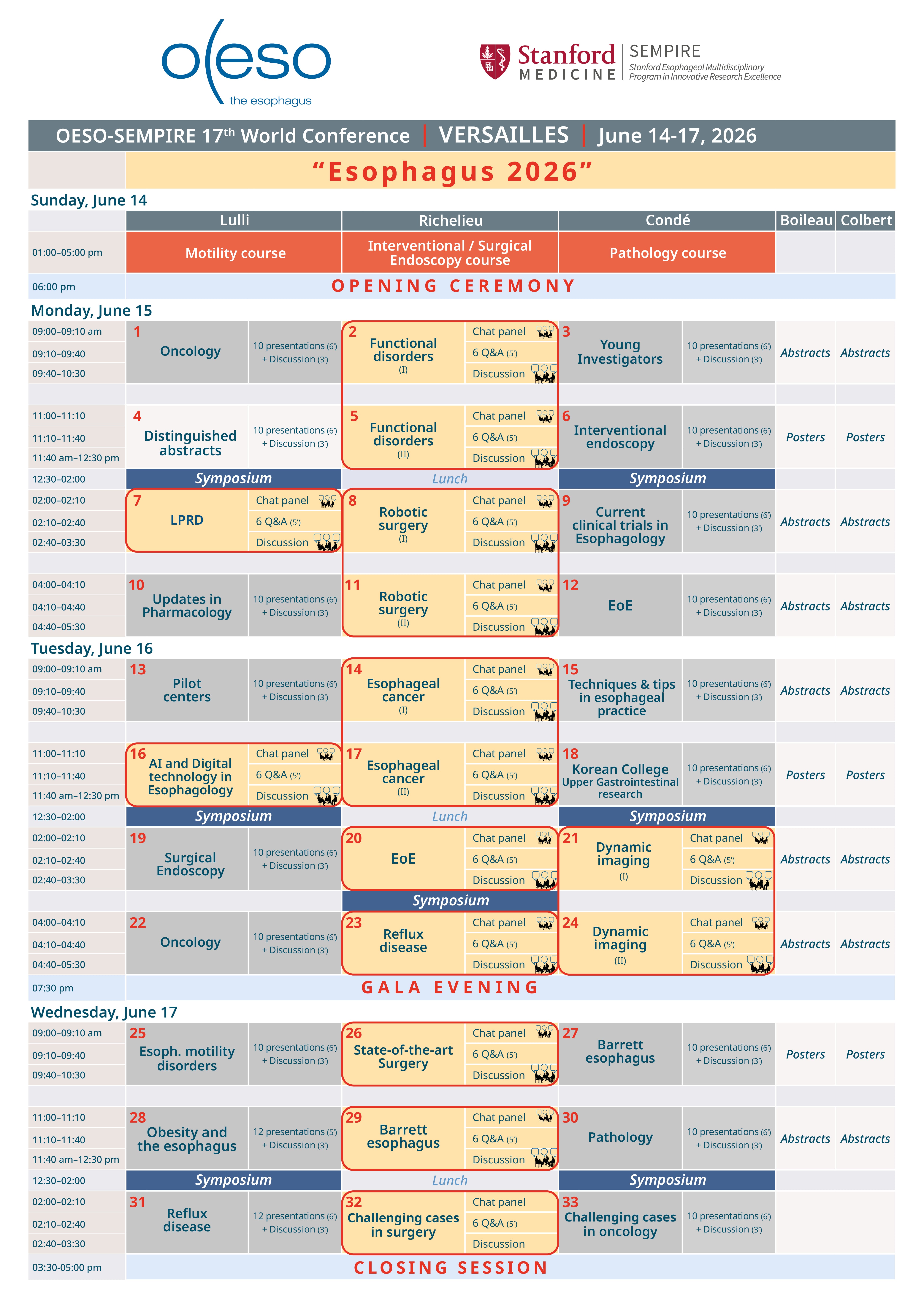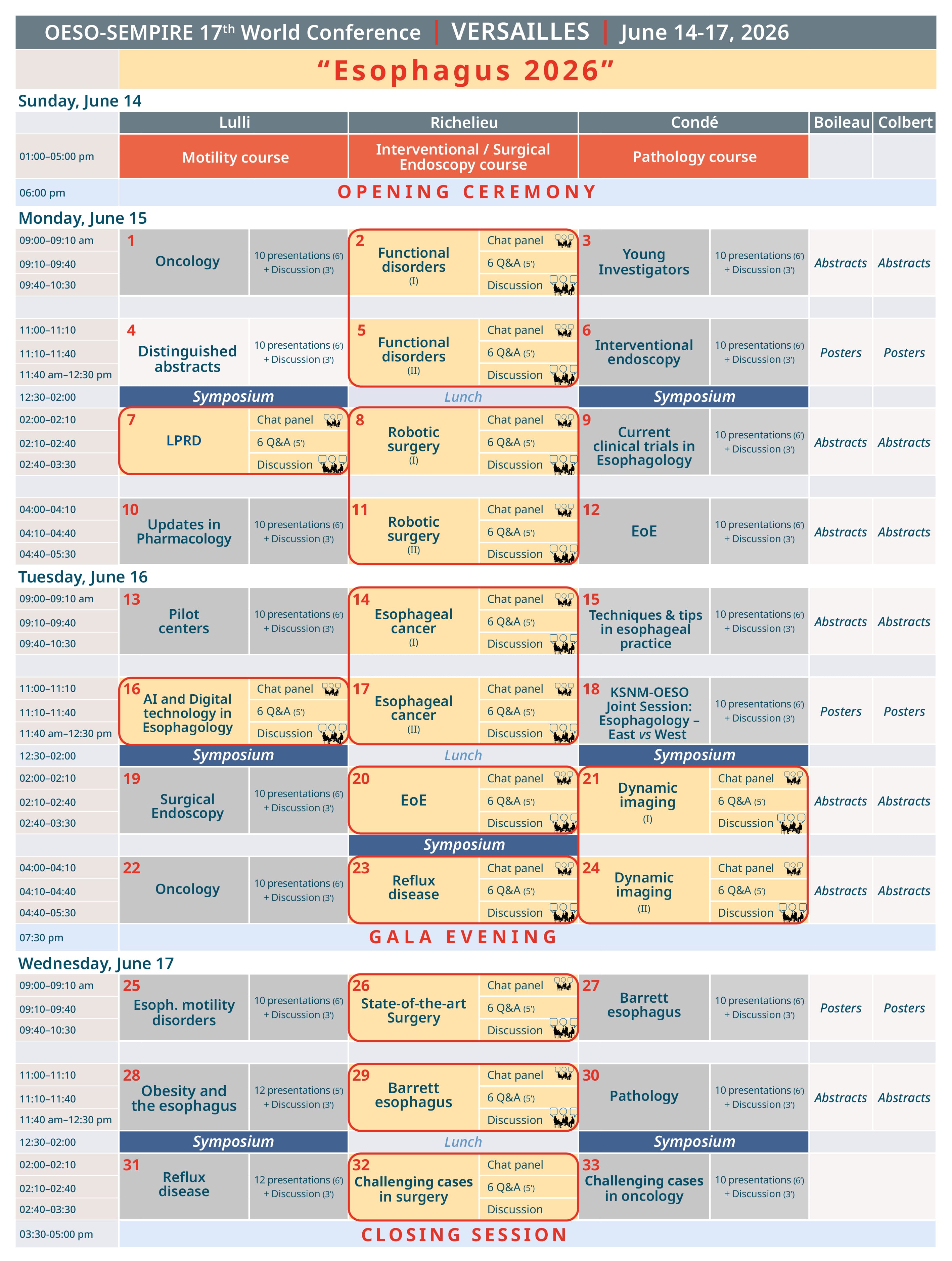 With 180 traditional presentations, 90 answers to high level scientific questions and 270 speakers, the program of the congress will therefore deliver to the scientific community a message that will be an exceptional synthesis with, in addition, presentations of all selected abstracts.