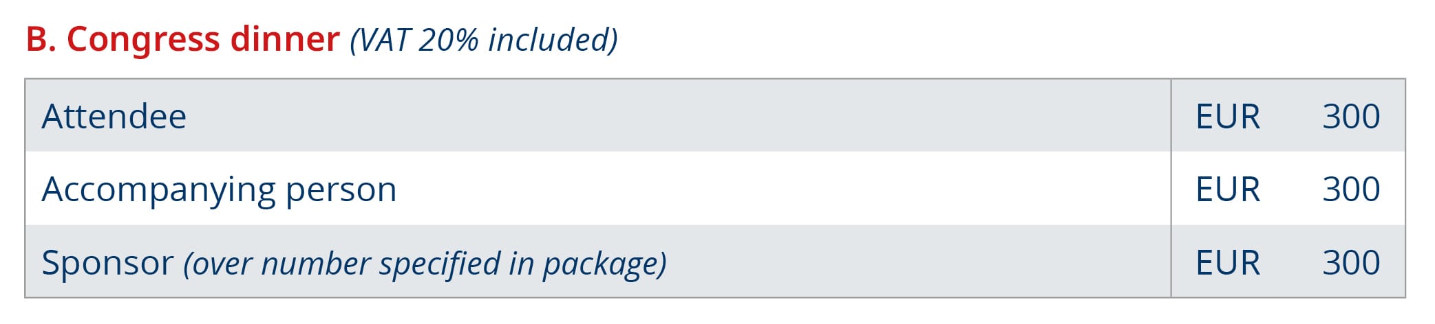 For cancellations requested before March 14, the registration and social event fees will be refunded with a deduction of 50 euros for cancellation fees.
